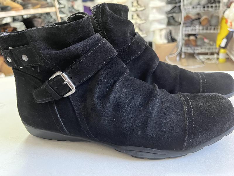 Замшевые ботинки, натуральная замша, подходят как на женщину так и на мужчину. На узкую ногу. Изготовлено в Индии, хорошее качество.