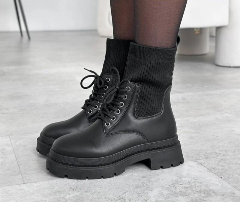 PU кожа+ текстиль вязка Высота от пятки 17,5 см Подошва 3,5 см по уду 5,5 см. Демисезон флис до щиколотки, да еще без утепления. 3045