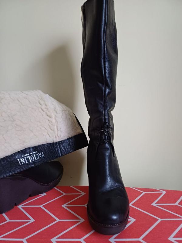 черные кожаные, внутришняя овчина,39р. Стан как новые-окружность по литке 37см.