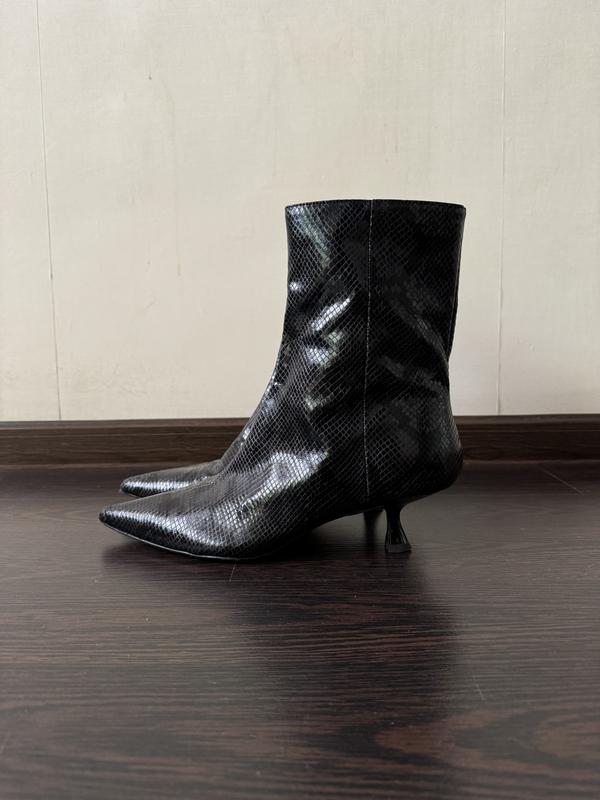 Красивые сапоги под рептилию. На удобных каблуках 4 см. На замке. Очень секси выглядят на ножке. Носила несколько раз ( видно по подошве). Состояние отлично. Для меня чуточку заширокие. По стопе 24,5 + носок.
