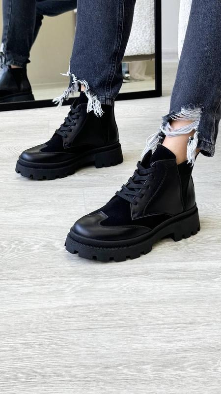 Код кVR Натуральна шкіра +замша На вибір демі чи зима Колір чорний Розміри 36-41 Розмірна сітка ⬇️ 36 23.5 см 37 24 см 38 24.5 см 39 25-25.5 см 40 26 см 41 26.5 см ціна- 2600 грн