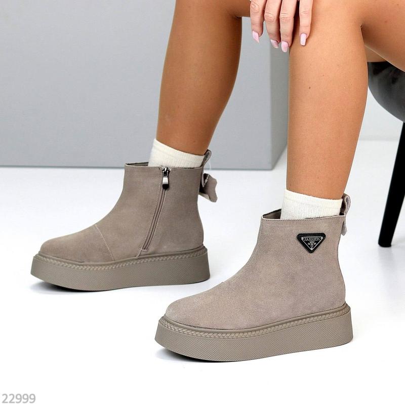 Черевики арт 22999 Размеры: 36-41 Материал: натур замша Внутри: натур мех Сезон: зима Цвет: мокко Высота от пятки: 12см Подошва: 4,5см/3,5см Производитель: фабричный Китай На среднюю стопу Замеры в описании 36-24 см 37-24,5 см 38-25 см 39-25,5 см 40-26 см 41-26,5 см Цена дроп/опт: 1700 грн