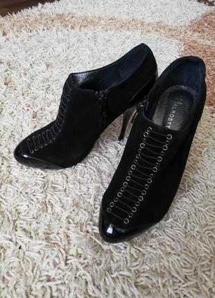 В ідеальному стані, лише подряпина на каблуку, при носінні не видно, легко усувається, на фото показала. Замш не затертий і не фарбований, ідеально чорний))