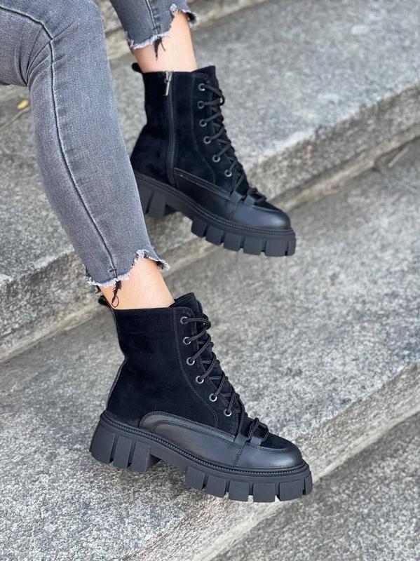 Код к601 Натуральная кожа и замша Внутри деми байка или зима набивная шерсть Цвет черный Размеры 36-41 Размерная сетка ⬇️ 36 23.5 см 37 24 см 38 24.5 см 39 25-25.5 см 40 26 см 41 26.5 цена- 2300 грн
