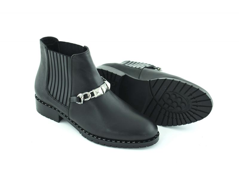 Элегантные женские кожаные ботинки. Модель на малом каблуке и с резинками на обхвате голени. Украина, кожа, черный, демисезон,
