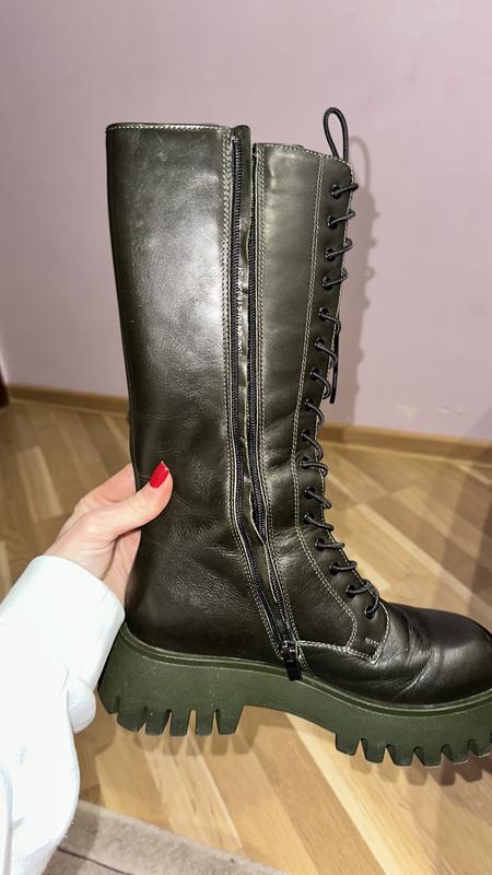 Длинные ботинки темного цвета Зимние и теплые При желании, можно сбросить как выглядят на ноге.
