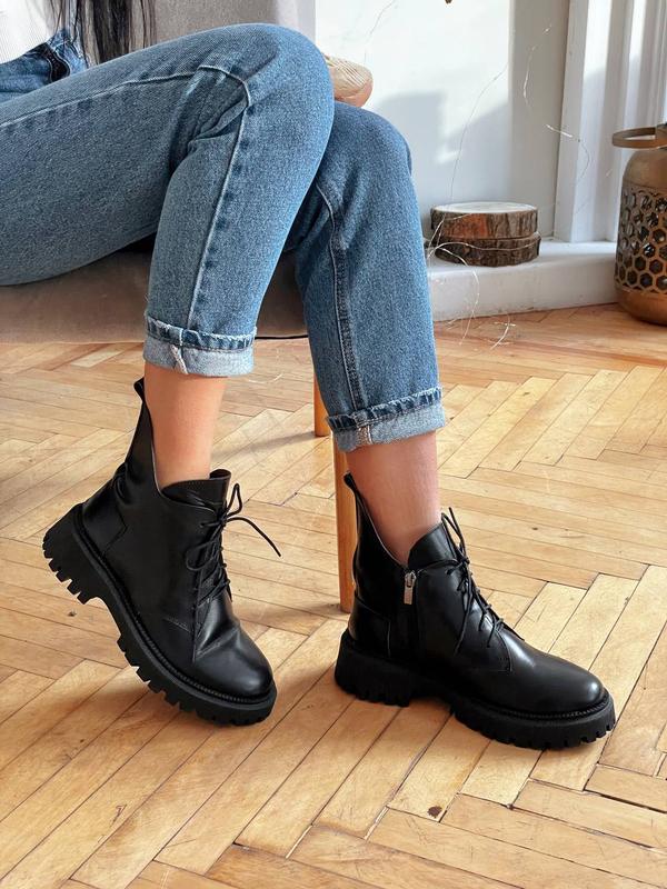 Черные зимние ботинки из натуральной кожи на шнуровке и замочек Сезон: Зима (набивной натуральный мех) Платформа: 3,5 - 5 см Высота: 11,5 см ( до пятки) На среднюю и узенькую ножку Размер в размер Размер по сетке: 36 - 23,5 см 37 - 24 см 38 - 24,5 см 39 - 25 см 40 - 25,5 см Цена 1700 грн Код 9778
