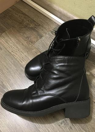 Осенние ботинки, б/у, носилися аккуратно. Натуральная кожа, украинская фабрика. Есть следы носки, незначительные, в целом выглядят очень хорошо. В середине байка. Размер 38, длина стельки 25 см.