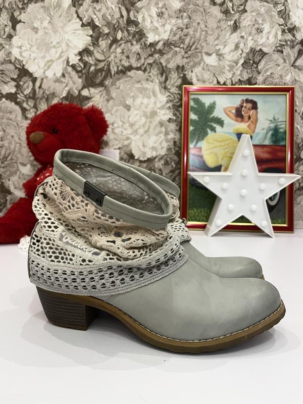 Кожаные ботинки серо-голубого цвета, новые, но на носках есть царапины