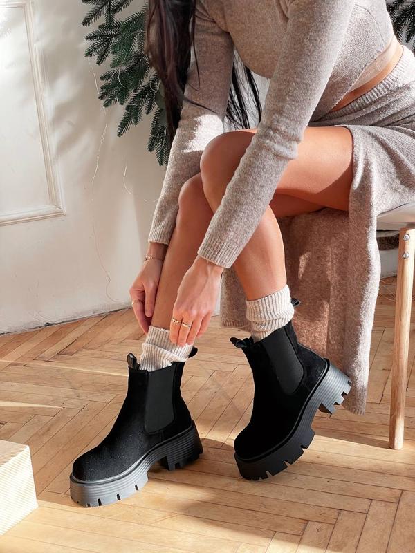 Черные массивные замшевые утепленные ботинки челси на резинках сбоку, очень эффектно смотрятся Сезон: Зима ( штучне хутро ) Платформа: 4-6 см Высота: 14 см ( до пятки) На среднюю ножку Размер в размер Размер по сетке: 36 - 23,5 см 37 - 24 см 38 - 24,5 см 39 - 25 см 40 - 25,5 см Код 9840