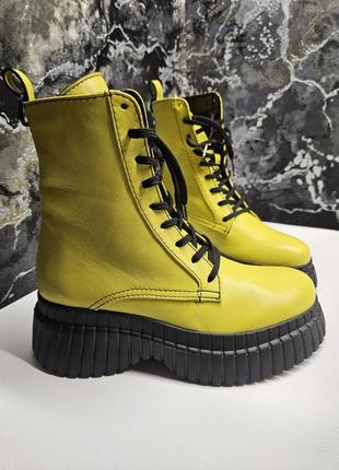 Женские желтые кожаные ботинки, размер 37. Выполнены из высококачественной натуральной кожи. Подкладка из байки. Это эксклюзивная ручная работа, гарантирующая внимание к деталям и неповторимый стиль. В наличии только одна пара.