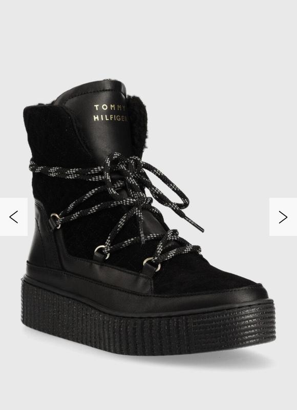 39/25см 40/25,5см Зимові чоботи із колекції Tommy Hilfiger. Модель виготовлена із поєднання натуральної шкіри та замші. - Круглий, трохи ущільнений носок. - Ущільнений задник. - Утеплена модель. - Зручна внутрішня частина. - Резинова підошва. - Модель зі шнурівкою. - Модель на платформі. - Висота платформи: 4 ст.