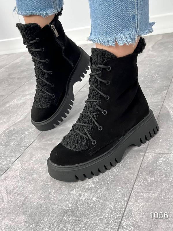ЗНОВУ В НАЯВНОСТІ Код 1056 Ботинки зимние Teddy 🧸 Цвет: черный Материал: НАТУРАЛЬНАЯ замша Сезон: зима ( набивна вовна) Подошва : 4,5 см Размерность: 36-40 36-23,2см 37-24 см 38-24,5 39-25см 40-26 см Цена 2200 грн