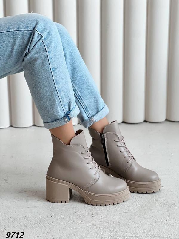 Код 9712 Ботильоны Сезон зима Материал натуральная кожа Внутри эко мех Цвет беж Высота каблука 7,5 см Высота подошвы спереди 3,5 см Высота от пятки 14 см На молнии Производитель Украина Размерная сетка 39 - 25.0 см 40 - 26,0 см