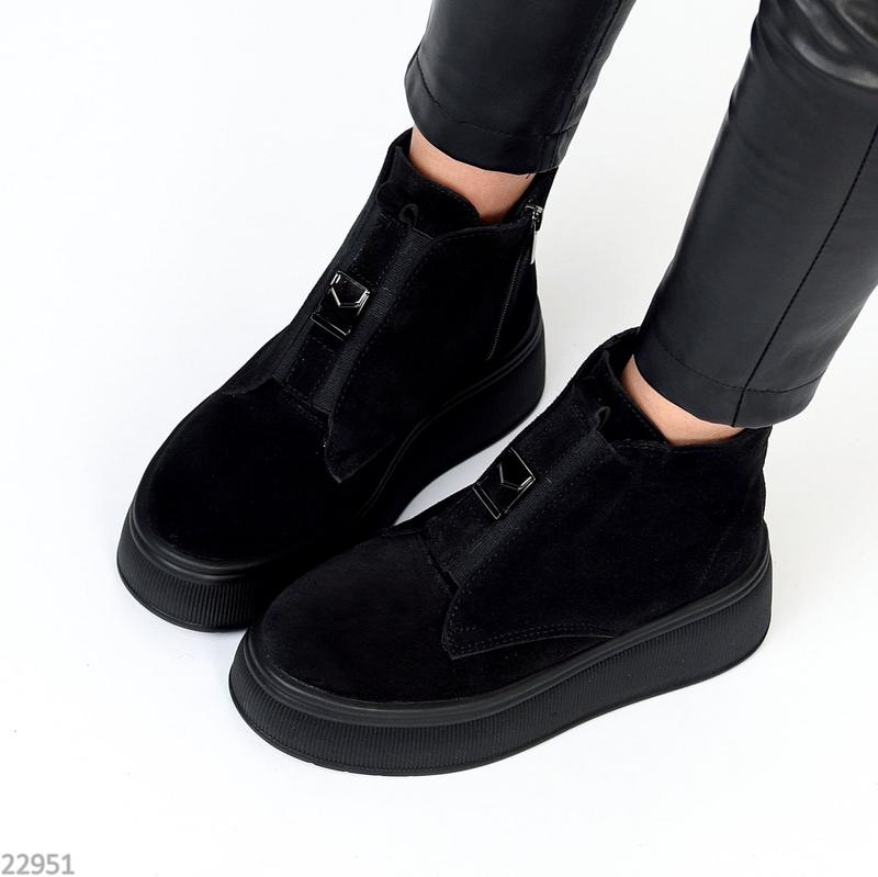 💫💜Снова в наличии💜💫 Код 22951 Размеры 37-40 Черевики "Stels" Материал - НАТУР. ЗАМША Внутри - Полушерсть 70/30 Сезон - Зима Цвет - Черный Высота от пятки - 10см Подошва - 6см/4см Производитель - Украина На среднюю стопу Размер в размер 37-24 38-24,5 39-25 40-26 1850 грн