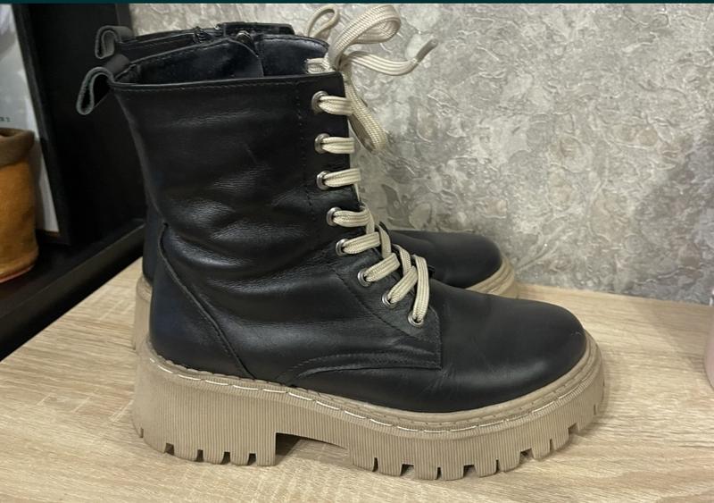 Зимние ботинки. Натуральная кожа, внутри натуральный мех. В хорошем состоянии, размер 37, на 23.5см. Трендовая модель. Сбоку на замке. Очень удобные и теплые