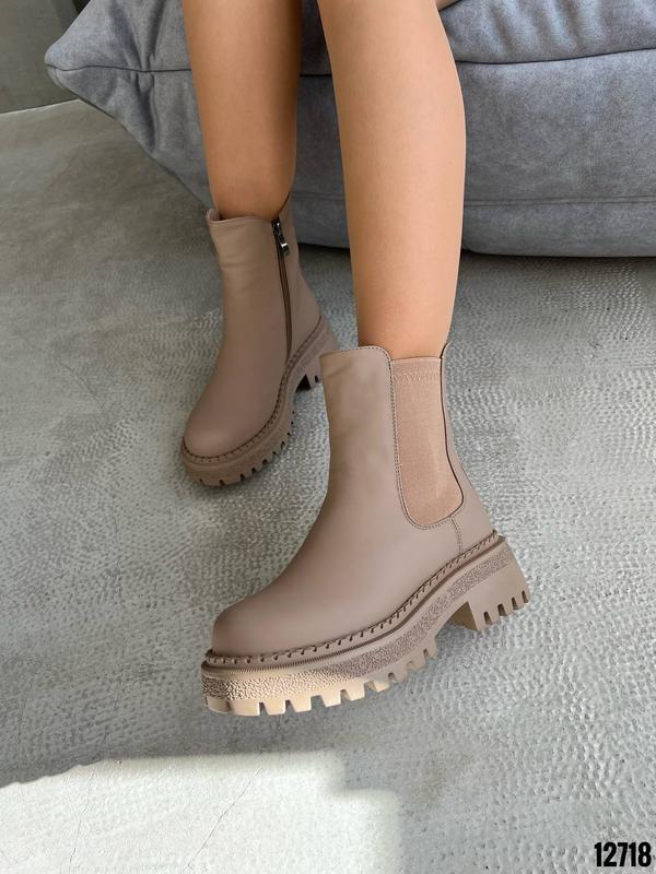 НОВИНКА ❤️ Код 12718 Черевики ЗИМА Эко-нубук Цвет Темный Беж Збоку резинка на флісі Высота от подошвы 16см Подошва 6см-4см Внутри мех Размер в размер 36-23,5см 37-24см 38-24,5см 39-25,5см 40-26см