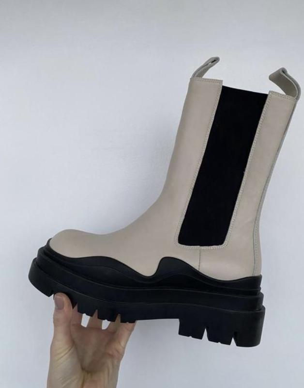 Шкіряні Челсі від бренду Еstro, 38 розміру, бежевий колір, чорна підошва, всередині теж шкіра, абсолютно нові, не були у використанні. Не підійшов розмір