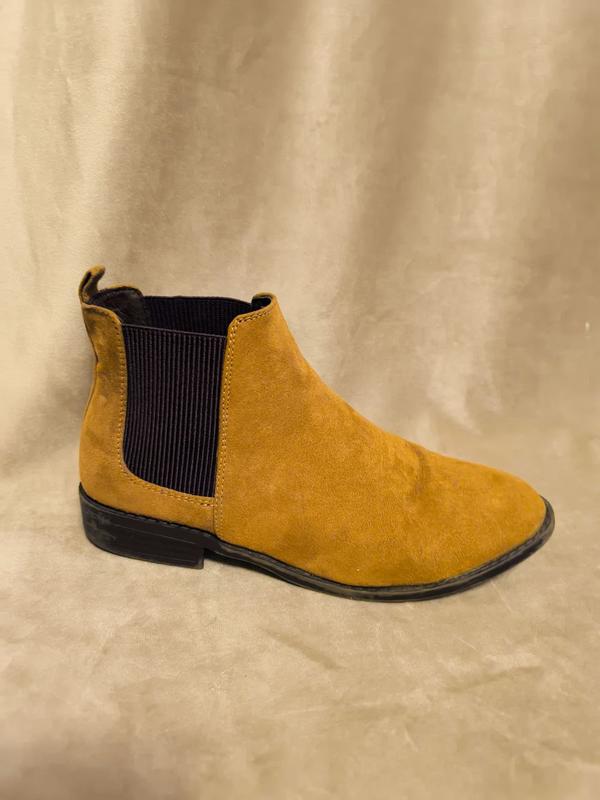 Очень красивые и удобные женские ботинки из натуральной замши коричневого цвета. С двух сторон имеют резинку для удобства обувания! Мягкие, очень хорошо подойдут кто имеет даже лодыжку, не будут натирать! на среднюю ножку, 38 размера! длина стельки 24,5 см. Подойдут для ежедневного использования!)