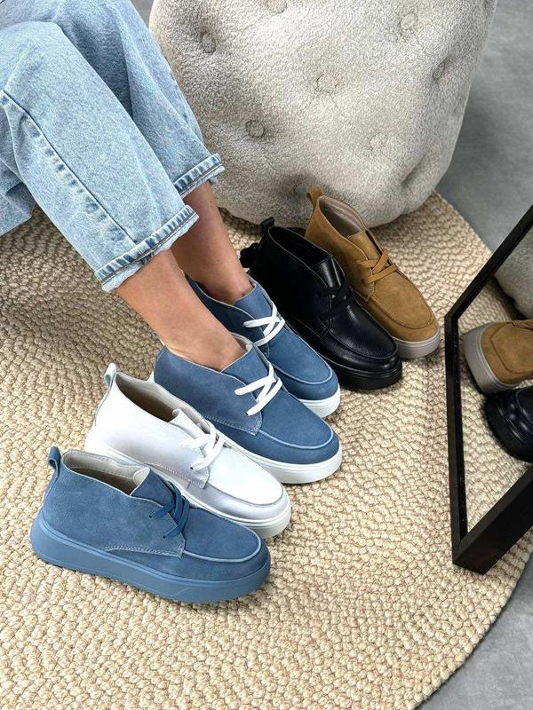 Размеры 36-41 Материал - НАТУР. ШКІРА ФЛОТАР/ЗАМША Внутри - Флис Сезон - Деми Высота от пятки - 8см Подошва - 4см/3см Производитель - Фабричный Китай На среднюю стопу Размер в размер 36-23,5 37-24 38-24,5 39-25 40-25,5 41-26