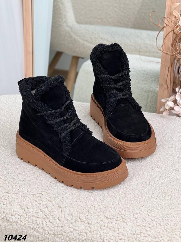 Код 10424 Ботинки Материал натуральная замша Цвет черный Сезон зима Внутри мех Высота обуви от пятки 12 см Высота подошвы позади 5 см,по переду 2,5 см На шнуровке Производитель Украина 🛒Размер по сетке: 36 - 23,5 см 37 - 24,0 см 38 - 24.5 см 39 - 25,0 см 40 - 26,0 см 41 - 26,5 см