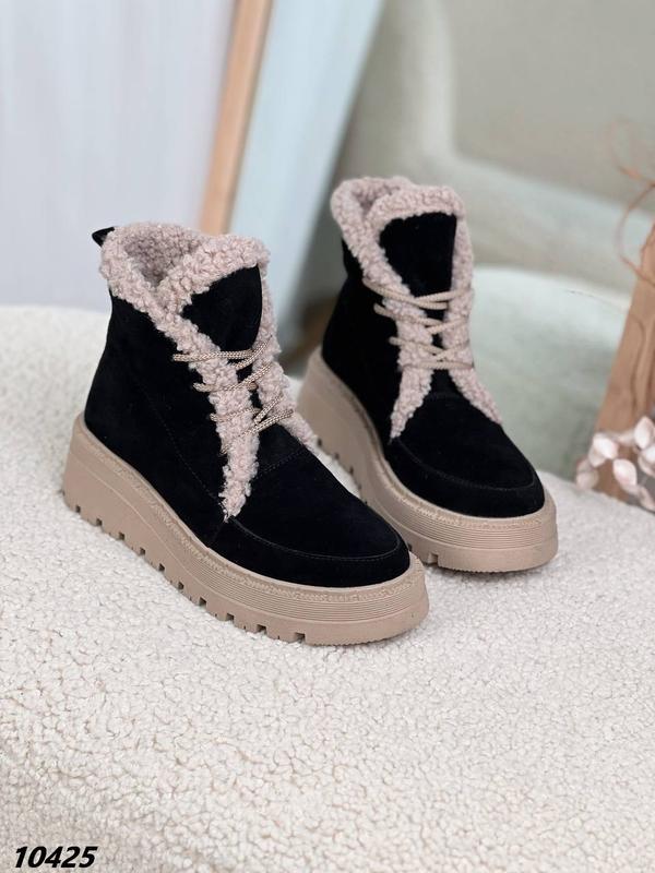 Код 10425 Ботинки Материал натуральная замша Цвет черный Сезон зима Внутри мех Высота обуви от пятки 12 см Высота подошвы позади 5 см,по переду 2,5 см На шнуровке Производитель Украина 🛒Размер по сетке: 36 - 23,5 см 37 - 24,0 см 38 - 24.5 см 39 - 25,0 см 40 - 26,0 см 41 - 26,5 см