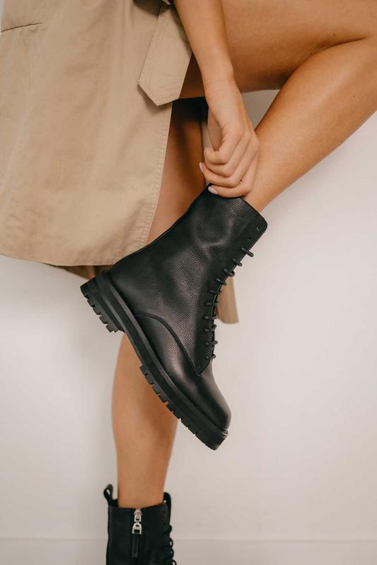 Ботинки из натуральной кожи в черном цвете, 36 размер. В середине флис. Без дефектов, очень качественная зернистая кожа.