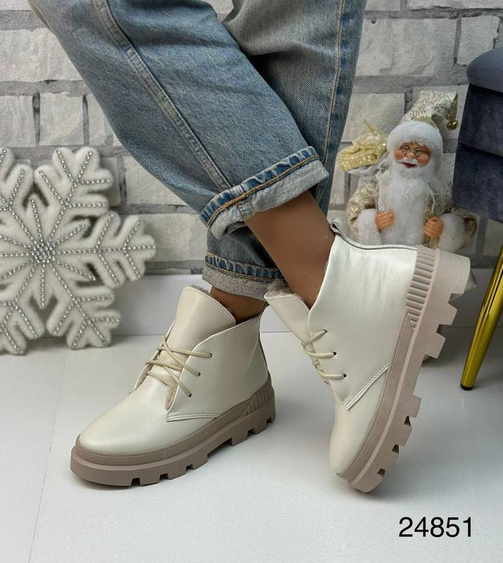 Артикул: беж шкіра 24851 Матеріал: натуральна шкіра Підкладка: набивна вовна Сезон: зима ❄️ Висота підошви: 5 см Висота чобота: 8,5 см Розмір: 36-41 36-23,5 см 37-24 см 38-24,5 см 39-25,5 см 40-26 см 41-26,5 см
