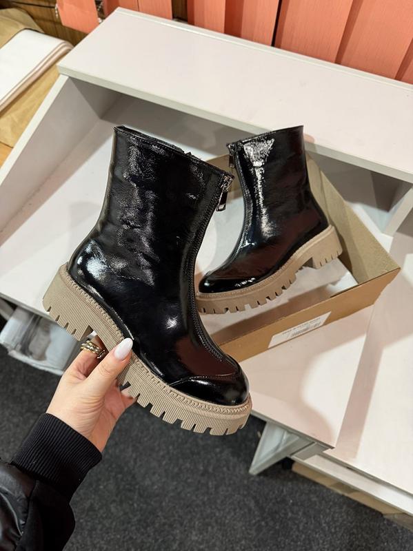 💥1750грн 💥 👉37=24 см Деми ботинки🖤 Натуральная лакированная кожа ( наплак )🔥🔥🔥 внутри байка👌 подошва: спереди 2 см, позаду 4,5 см, высота от пятки 17 см, объем края 30-32 см, передняя молния - декор, производство Украина💙💛