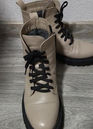 Ботинки бежевые кожаные зимние. Длина стельки 27 см На шнуровке и есть молния сбоку. В одном ботинке немного протерлась на пятке подкладка.
