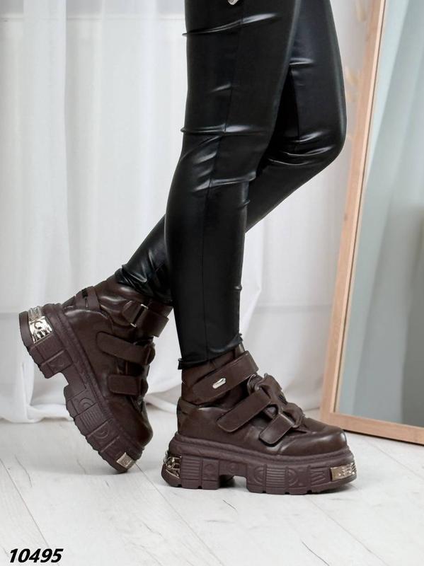 Код 10495 Ботинки Материал натуральная кожа Сезон деми Внутри текстильная подкладка Цвет шоколад На липучках Высота обуви от пятки 9,5 см Высота подошвы позади 7,5 см спереди 5,5 см 🛒Размер по сетке: 37 - 24,0 см 38 - 24.5 см 39 - 25,0 см 40 - 25,5 см