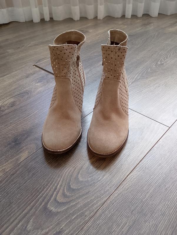 В идеальном состоянии. Натуральный замш. Стелька 26 сантиметров Каблук 7 см Цвет немного отличается чем на фото