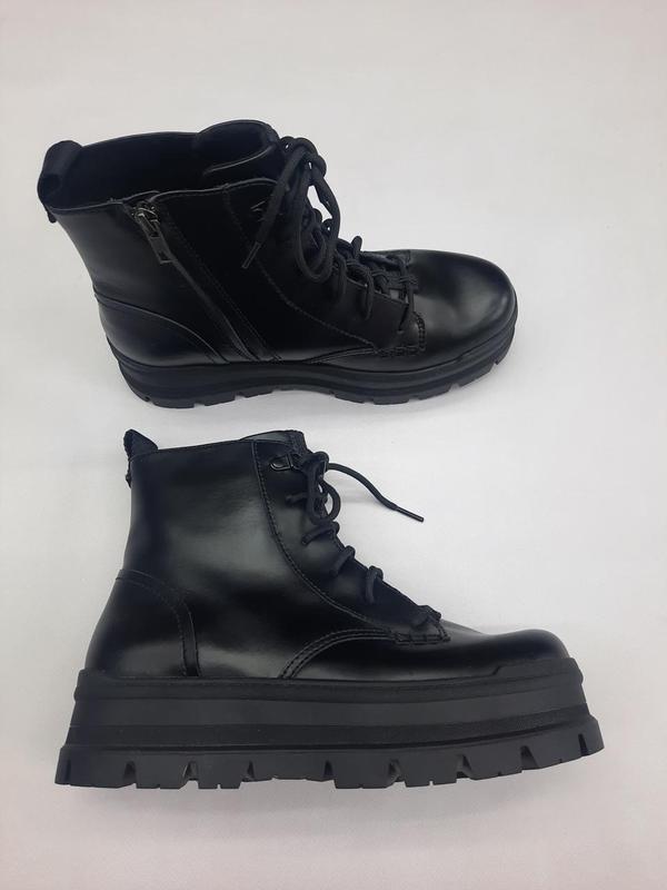 Матеріал: Шкіра Дефект на фото оригінал Модні армійські черевики, відлиті з міцної водонепроникної шкіри, Sidnee надають бунтарського вигляду будь-якому наряду завдяки своїй міцній підошві на платформі та збільшеному протектору. Завдяки легкій застібці-блискавці та знімній устілці, виготовленій з нашої фірмової суміші переробленої вовни UGGplush, цей сміливий стиль забезпечує зручність та відчуття затишку. Поєднуйте з рваними джинсами та байкерською курткою або контрастуйте з міні-спідницею та об'ємним светром. Захист: водонепроникні або водостійкі матеріали Водонепроникна шкіра Язичок Середня блискавка Текстильна підкладка 7 мм UGGplush™: 80% перероблена вовна, устілка 20% ліоцел. Устілка з піноматеріалу Міцна гумова підошва Висота платформи 1,75 дюйма Підходить для: повсякденного, легкого чи помірного дощу