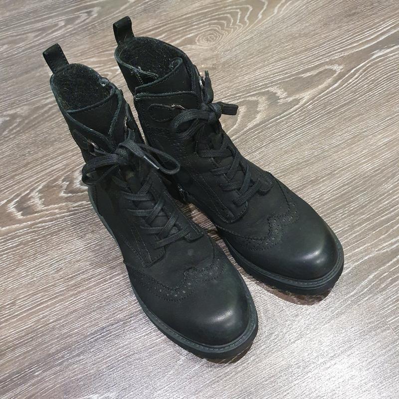 Ботинки в красивом состоянии, нубук, внутри байковая подкладка, сбоку молния. Подошва не стерта. Не текут. Размер указанный 39, носила на 38,5 Имеют следы ношения