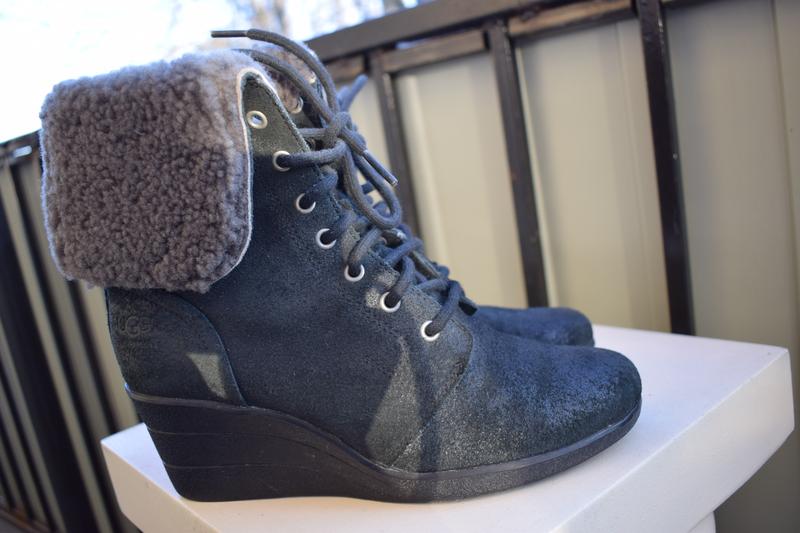 Продам шикарные тепленькие угги на танкетке ботильоны кожаные Ugg Australia. Оригинал 100%. Made in Chine. по кромке натуральный мех-овчина. Высота сапога-полностью-28 см. в том числе высота танкетки-5,8 см, высота ботинка с мехом-кромкой -21,5 см. Непромокаемые угги позволяют модницам оставаться стильными и чувствовать себя комфортно, даже когда дорога домой сопровождается дождем, мокрым снегом и слякотью. Waterproof. Указан размер US-7 UK-5.5 Eur-38 24 см. Стелька меховая-овчина-кремового цвета. В идеальном состоянии, как новые. Длина по съемной стельке-25 см. Подойдут на полный размер 38-38,5 см. Стильные, красивые, добротные. Женские ботинки, уги, зимние сапоги. Угги на танкетке не похожи на традиционные модели на плоской подошве, эта модель по настоящему актуальна и придется по душе тем женщинам и девушкам, кто предпочитает держать ноги в тепле и выбирает утонченный стиль в одежде. Смотрите мои другие объявления, отправлю по Украине. моб. 0987247548