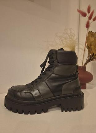 Ботинки выполнены из натуральной кожи, внутри есть тоненький утеплитель. Цвет черный комбинированный с темно-зеленым. Длина вилки 24 см см Высота каблука 4,5см, высота подошвы под стопой 2.5 см В идеальном состоянии