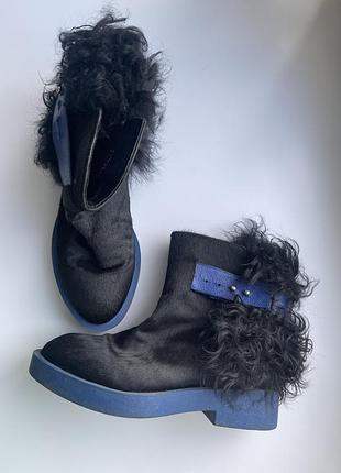 Демісезонні черевики 36 розміру дорогого бренду Ash. Шкіра і натуральне хутро. Устілка 23 см, ширина устілки 8 см, платформа 1,8 см, підбор 3,5 см, висота 14 см, обхват халяви 33 см, регулюється. Дефект - відсутня 1 з 2 кнопок, трохи забруднена підошва, на ремінцях з внутрішньої сторони лущиться екошкіра.
