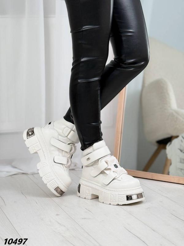 Ботинки Материал натуральная кожа Сезон деми Внутри текстильная подкладка Цвет молочно белый На липучках Высота обуви от пятки 9,5 см Высота подошвы позади 7,5 см спереди 5,5 см 🛒Размер по сетке: 36 - 23,5 см 37 - 24,0 см 38 - 24.5 см 39 - 25,0 см 40 - 25,5 см