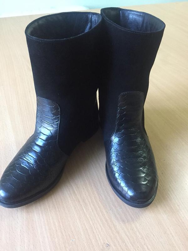 Ботинки шили на заказ, но к сожалению пролетели с размером. Полностью натуральные кожа + замша. Внутри немного утеплены. Обувала 3 раза и поняла , что не мой размер. Размер 35 р