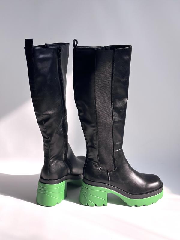 🔻размер: 39 🔻замеры: 👉. 25-25,5 см 25- 25,5 см каблук - 7 см платформа -4 см ширина стельки - 9 см высота Повна - 48 см ширина зверху- 20 см 🔻состояние: новые 🔻матерЬ : эко кожа 🔻утеплювач : тонкий синтипон 🔻цвет: черный