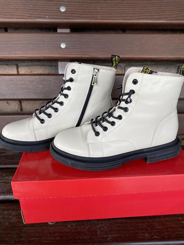 Сапожки молочного цвета, длина стельки-25 см, сапожки обуты один раз