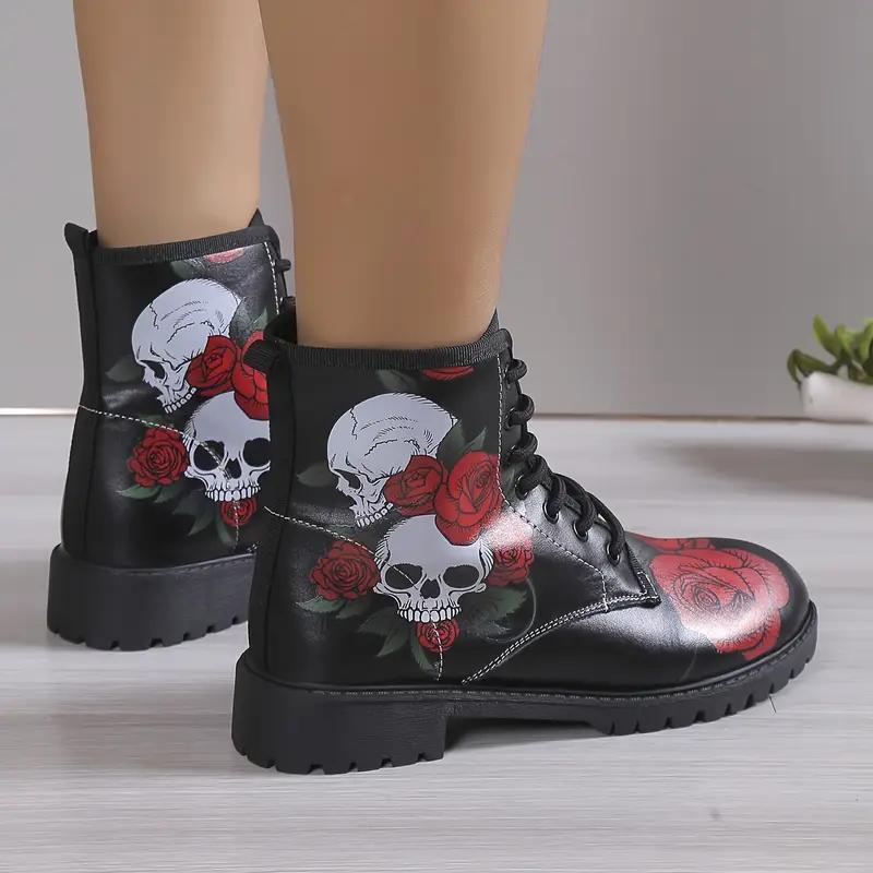 Ботинки женские с черепами и розами