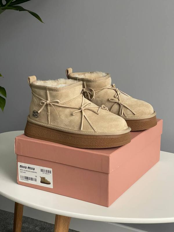 MIU MIU Winter Boot Sand • Материал ♡ Верх: натуральная замша ♡ Внутри натуральная, цельная овчина по всей длине ♡ Стелька натуральная овчина ♡ Каждая пара обработана водоотталкивающим составом, который предотвращает впитывание влаги ♡ Подошва: резина (не скользит, холод не пропускает) • Производитель: Италия • Комплект: ♡ Сертификат оригинальности ♡ Оригинальная коробка и упаковочная бумага ♡ Брендовый пылевик • Размеры: 36-41 (36-22,5 см; 37-23,5 см; 38-24 см; 39-25 см; 40-25,5 см; 41-26 см) • Арт last1783 Оплата при получении товара на поште