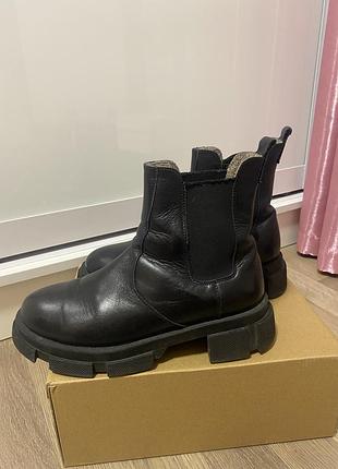 Зимові черевики челсі Чорна натуральна шкіра, утеплені натуральним хутром. Без каблука, зручні й теплі, класичний дизайн. Стан: відмінний. Розмір 37.