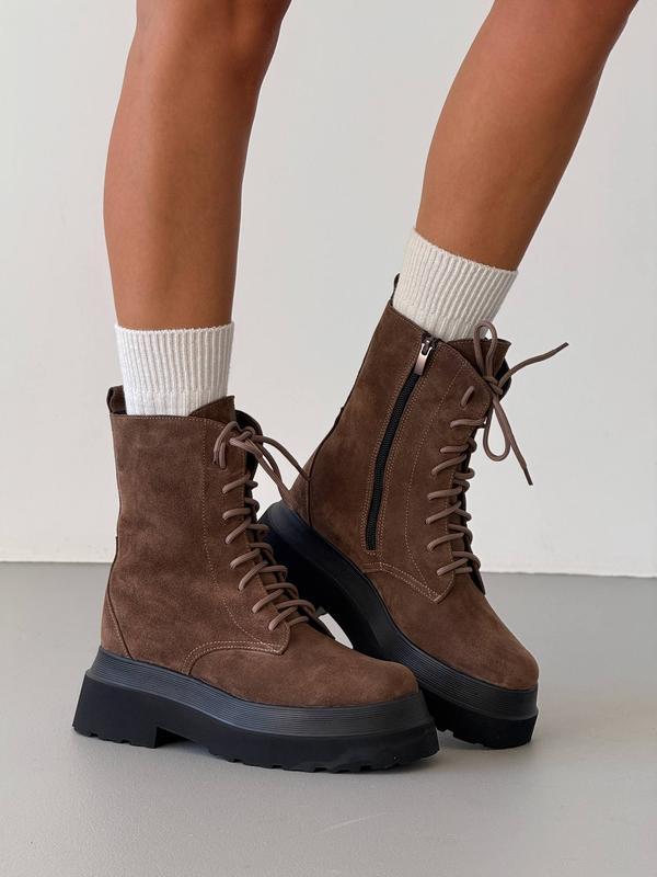 ‼️Перед заказом через "КНОПКУ КУПИТЬ" уточните наличие модели и размера. Альберт!!️ Данная модель в распродаже, обмене и возврате нет 1. Оплата 100% на карту нова пошта, укр.пошта 2. Наложен с предоплатой 150 грн только новая почта Код 11166 Зимние берцы Цвет: Коричневый | Тоффи Материал: Натуральная замша Внутри: мех (в составе 50 % шерсти) Сбоку рабочая молния Регулируются шнуровкой Высота от пятки: 17,5 см Подошва: 4,5 см/ 6,5 см Материал подошвы: ПУ (полиуретан) Производство - Украина Некоторые размеры большемерят Вага 35р = 880 г