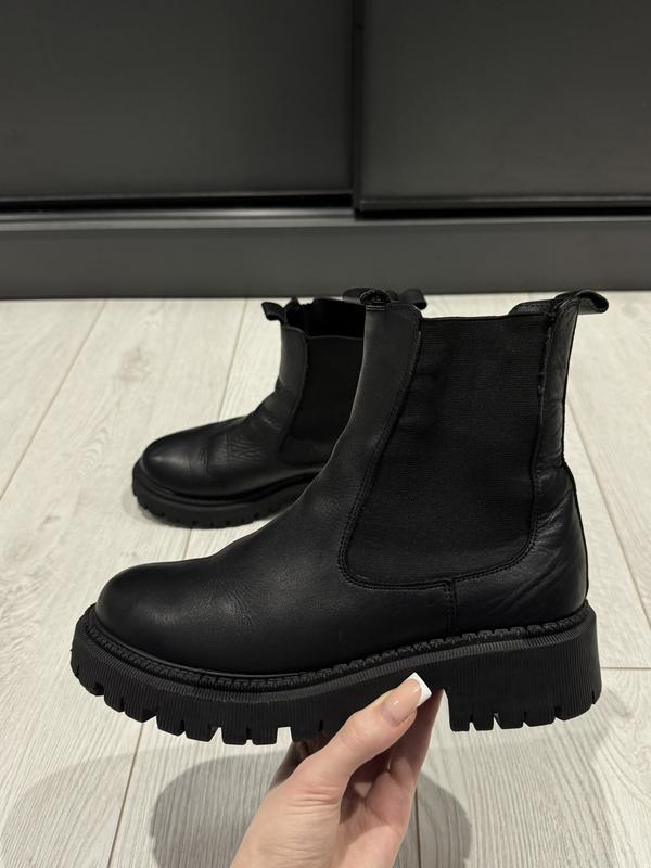 Жіночі челсі з натуральної шкіри🤍 Лаконічна, але дуже стильна модель для холодної пори року. Натуральна шкіра забезпечує тепло, комфорт і довговічність, а класичний чорний колір робить ці черевики універсальними для будь-яких образів — від повсякденних до більш елегантних. Челсі красиво виглядають на ніжці та зручні для щоденного носіння. Розмір: 38. Устілка: 24 см.