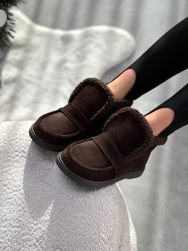 Натуральные замшевые зимние ботинки - угги цвета шоколад