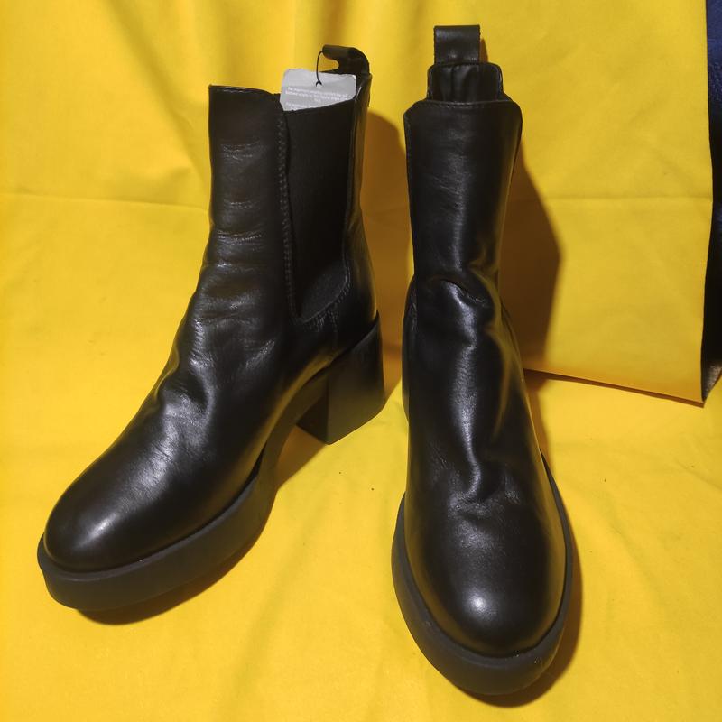 женские кожаные ботинки челси известного производителя, длина стельки измеренная внутри рулеткой составляет 25см, стелька зафиксирована общая высота обуви 23см, высота каблука 7.5см, снадам дополнительные фото и информацию при необходимости