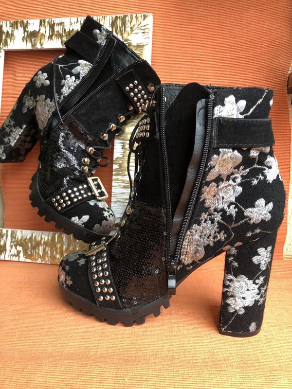 Стильні ботильйони, нові, цікавий дизайн, устілка 24,8см, висота каблука ззаду 10,5см, збоку 2см, на замочку та шнурівці, можливий торг