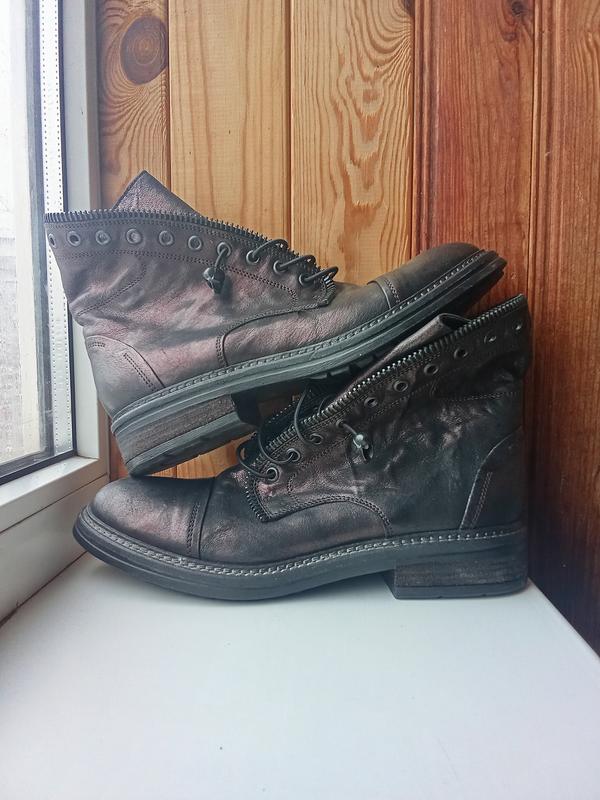 Оригинальные кожаные демисезонные ботинки с необычной раскраской, переливается цвет, шнурки-затягивающиеся резинки, идут на узкую ногу Состояние отличное Размер : 38.5, стелька 24.5см, каблук 2.5см
